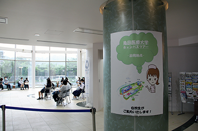 午後からは東町キャンパスに移り、主な実習先病院である「亀田メディカルセンター」の見学ツアーを行いました。